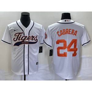 Men’s Detroit Tigers #24 Miguel Cabrera Navy/Orange Lace-Up Pullover Hoodie