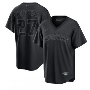 Men’s Houston Astros #27 Jose Altuve Black Pitch Black Fashion Replica Stitched Jersey