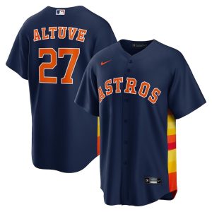 Men’s Houston Astros #27 Jose Altuve Navy 60th Anniversary Flex Base Stitched Baseball Jersey