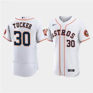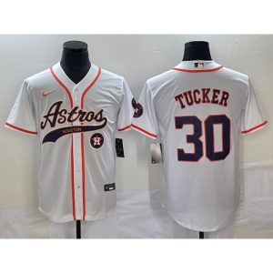 Men’s Houston Astros #30 Kyle Tucker White 2023 Gold Collection With World Serise Champions Patch Stitched Baseball Jersey