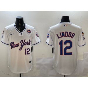 Men’s New York Mets #12 Francisco Lindor Nike Black Lights Out Replica Player Jersey