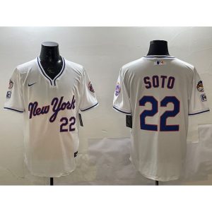 Men’s New York Mets #22 Juan Soto White 2025 Spring Training Stitched Baseball Jersey