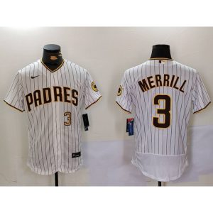 Men’s San Diego Padres #3 Jackson Merrill White City Connect Cool Base Stitched Baseball Jersey
