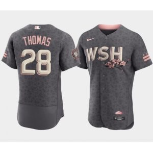 Men’s Washington Nationals #28 Lane Thomas 2022 Grey City Connect Cherry Blossom Flex Base Stitched MLB Jersey