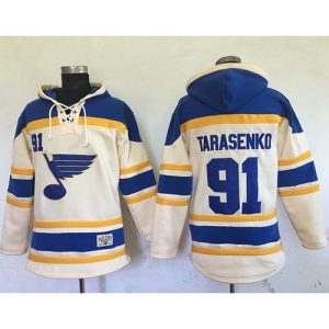 Blues #91 Vladimir Tarasenko Cream Sawyer Hooded Sweatshirt Stitched NHL Jersey