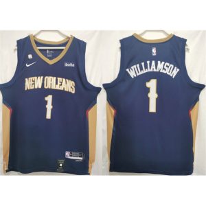 Men’s New Orleans Pelicans #1 Zion Williamson Navy Stitched Basketball Jersey