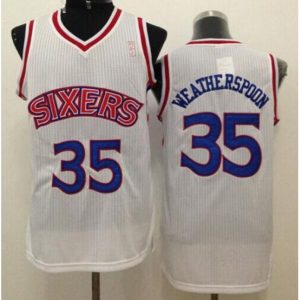 76ers #35 Clarence Weatherspoon White Throwback Stitched NBA Jersey