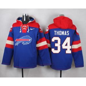 Bills #34 Thurman Thomas Royal Blue Name & Number Pullover NFL Hoodie