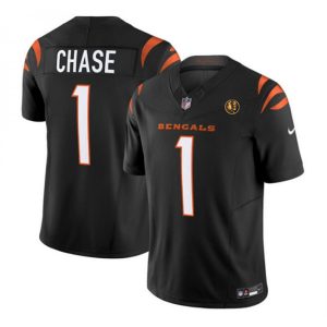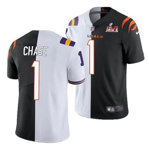 Men’s Cincinnati Bengals #1 Ja’Marr Chase 2022 Purple/Black Split Super Bowl LVI Stitched Jersey