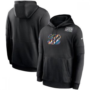 Men’s Cincinnati Bengals 2019 Black 100th Season Sideline Team Logo Performance Pullover Hoodie