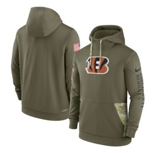 Men’s Cincinnati Bengals 2021 Black Sideline Logo Performance Pullover Hoodie