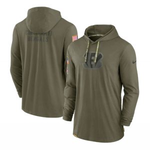Men’s Cincinnati Bengals 2022 Olive Salute to Service Tonal Pullover Hoodie