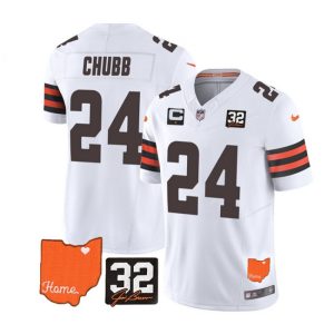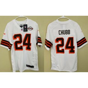 Men’s Cleveland Browns #24 Nick Chubb White 1946 throwback Stitched Jersey