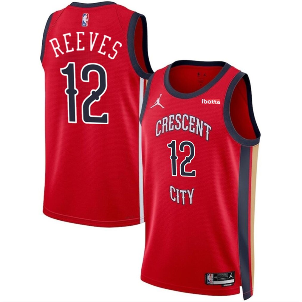 Men’s New Orleans Pelicans #12 Antonio Reeves Red 2024 Draft Statement Edition Stitched Basketball Jersey