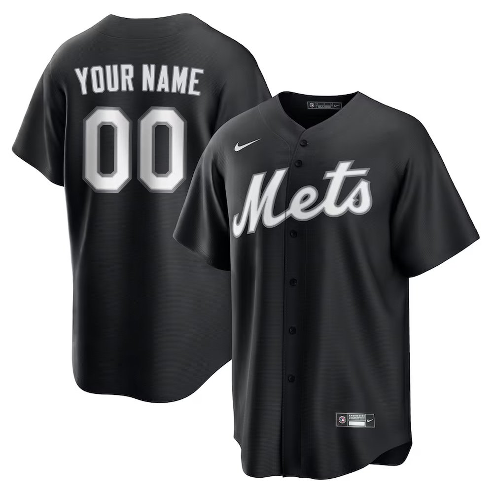 Men’s New York Mets Nike Custom Black Lights Out Replica Jersey